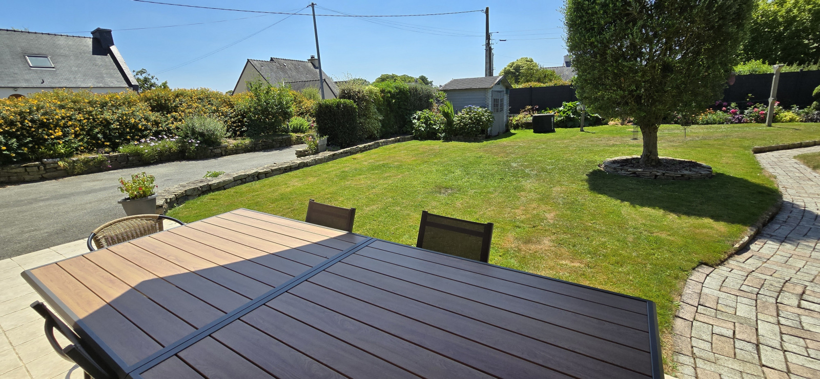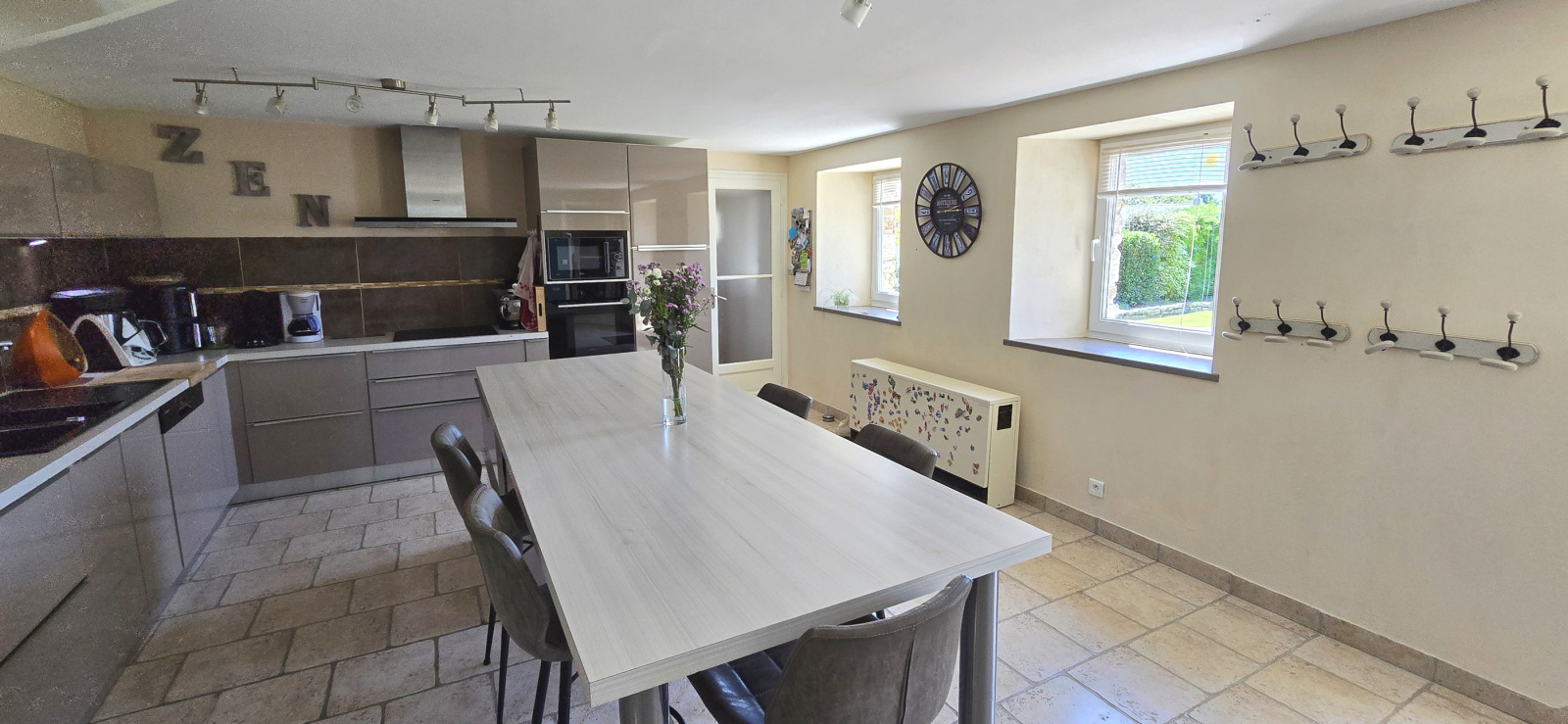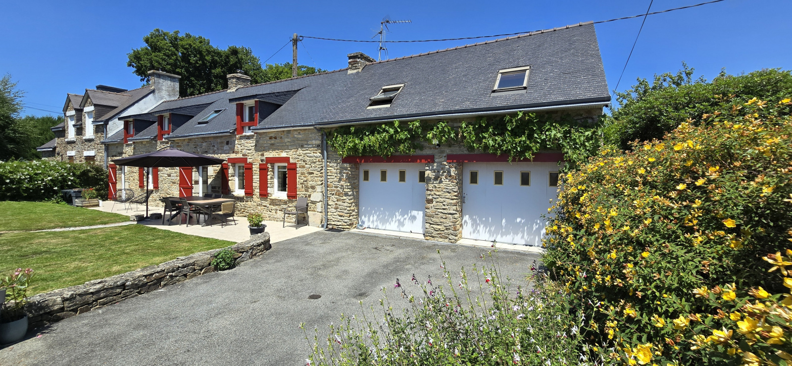 MANDAT CAP EXCLUSIF. Mellac. A 2 minutes du centre-bourg et à 5 minutes de Quimperlé. Dans un hameau. Au calme et en impasse. Très belle longère proposant des prestations de qualité. Rénovée avec soin, elle est configurée ainsi : au rez-de-chaussée : salon-séjour avec cheminée-insert, cuisine aménagée et équipée avec grand plan snack, wc ; à l'étage : 4 chambres, salle d'eau (double vasques) et wc. Grenier aménageable. Terrasse carrelée et exposée sud. Double garage. Très beau jardin paysager et clôturé de 634 m². Cour en enrobé avec bornes lumineuses. Portail et portillon alu. Abri de jardin. Maison dans un état irréprochable. Beaucoup de charme ! Bien uniquement proposé par votre agence Cap Home Immobilier ! (Les informations sur les risques auxquels ce bien est exposé sont disponibles sur le site Géorisques : www.georisques.gouv.fr).