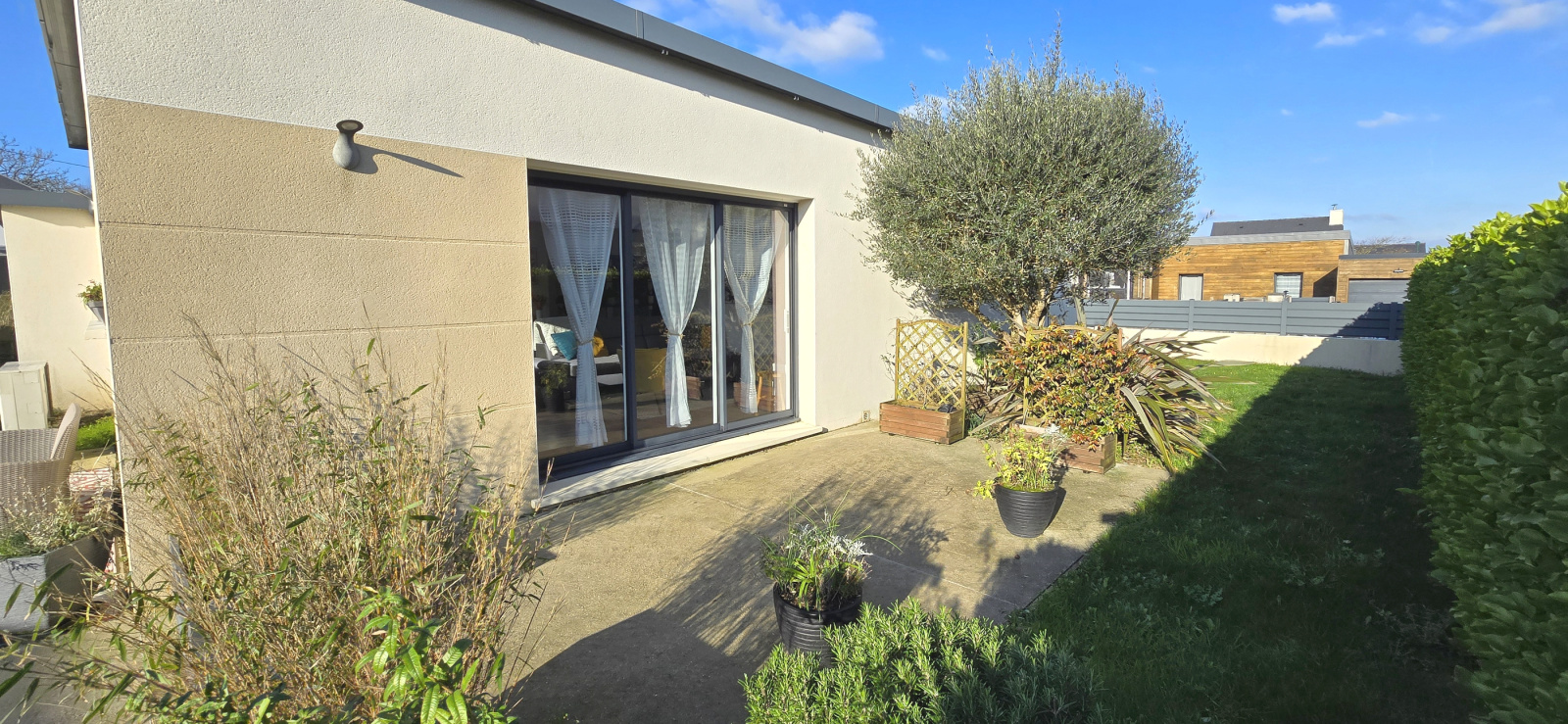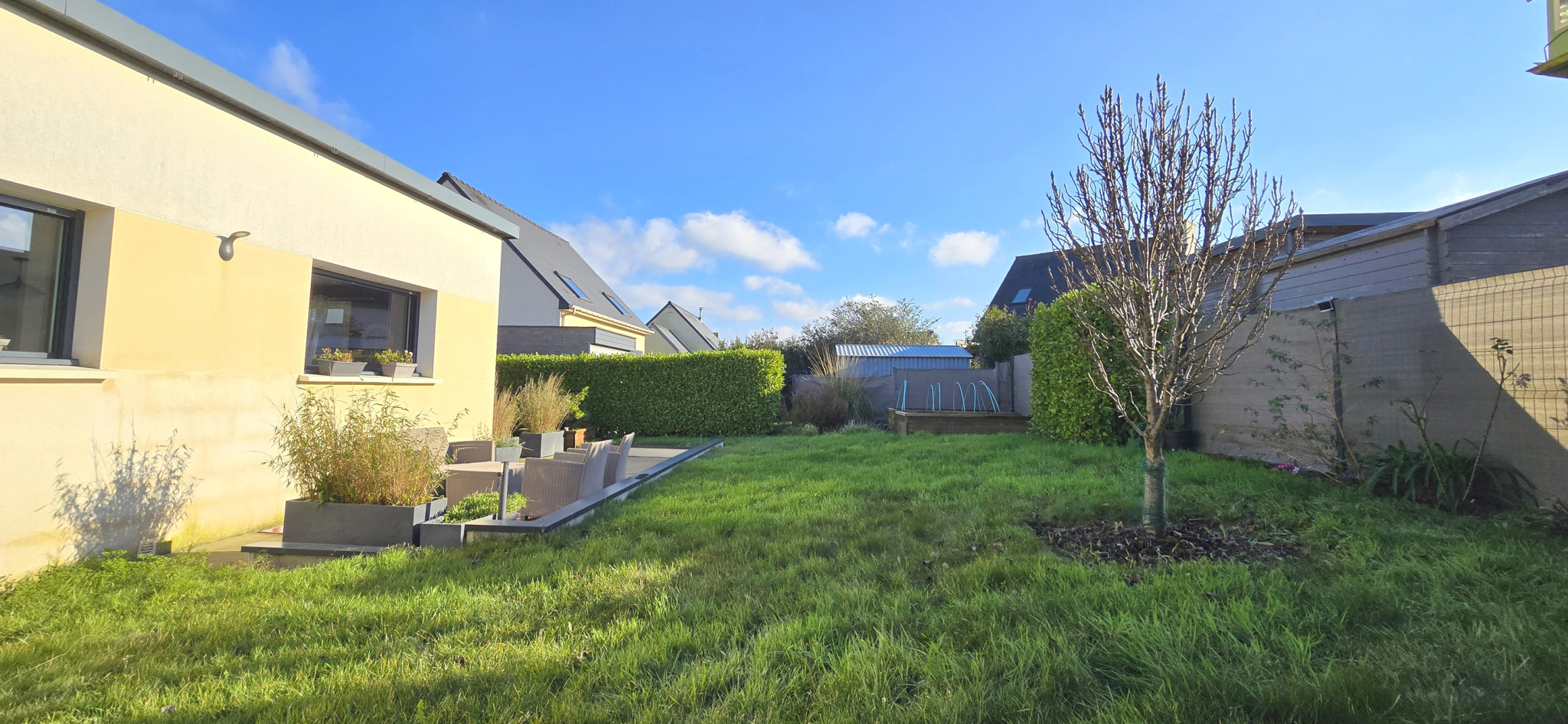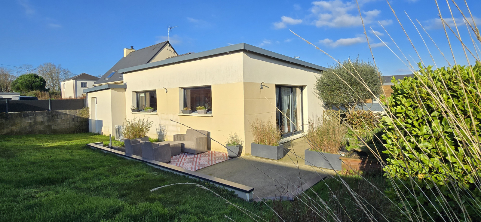 MANDAT CAP EXCLUSIF. Mellac. Située à seulement 5 minutes de Quimperlé et de l’accès à la voie rapide, cette maison bénéficie d’un emplacement privilégié. À proximité immédiate du bourg. École, commerces, services médicaux et arrêt de bus sont accessibles à pied. Implantée dans un quartier résidentiel calme, en impasse, elle offre un cadre de vie paisible et recherché. Cette agréable maison moderne (construite en 2013) propose une configuration complète de plain-pied. Elle se compose, d'une entrée avec placard, d’un lumineux salon-séjour, d’une cuisine aménagée et équipée ouverte, de trois chambres (rangements), d’une salle de bains et de wc indépendants. Aux normes RT 2012, elle est équipée d’un chauffage au sol par pompe à chaleur. Volets roulants électriques. Garage avec espace buanderie. À l’extérieur, vous profiterez d’un jardin clos et paysager de 438 m², d’une grande terrasse exposée plein sud ainsi que d’un abri de jardin. Maison en excellent état et parfaitement entretenue. Bien uniquement proposé par votre agence Cap Home Immobilier ! (Les informations sur les risques auxquels ce bien est exposé sont disponibles sur le site Géorisques : www.georisques.gouv.fr).