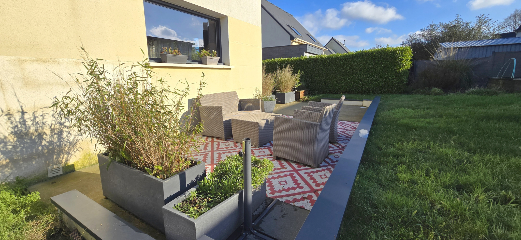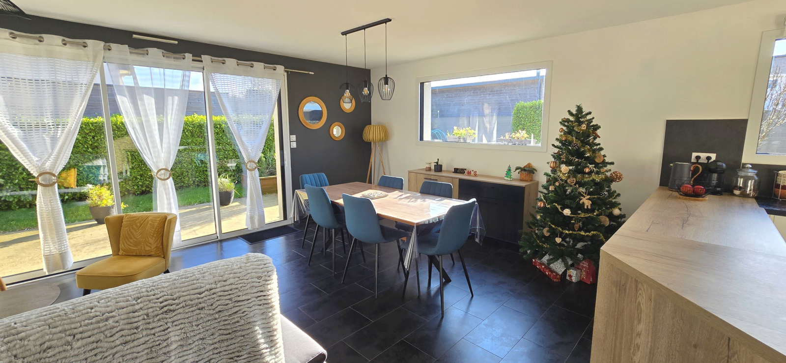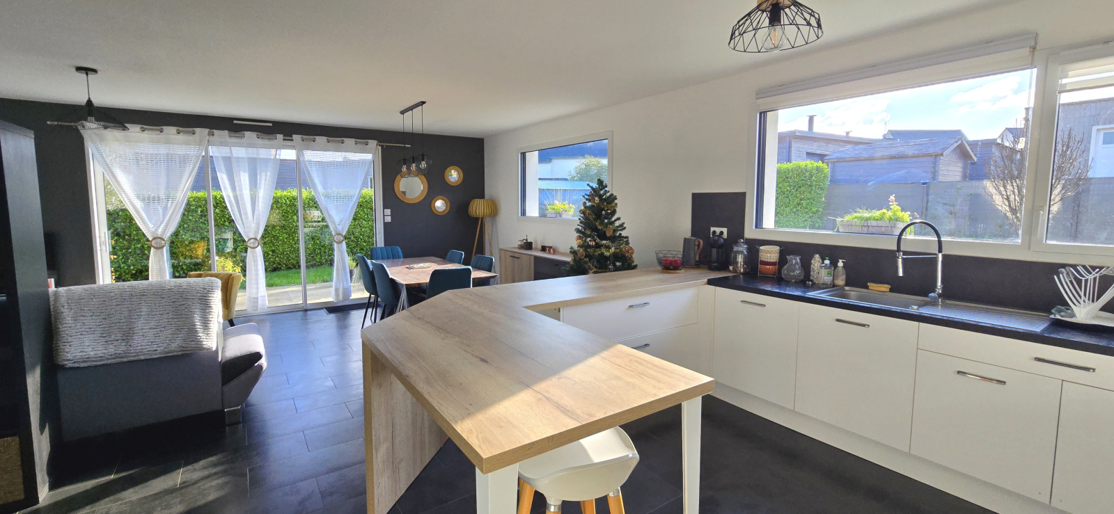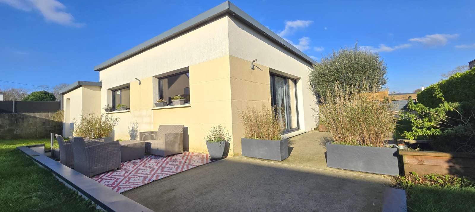 MANDAT CAP EXCLUSIF. Mellac. Située à seulement 5 minutes de Quimperlé et de l’accès à la voie rapide, cette maison bénéficie d’un emplacement privilégié. À proximité immédiate du bourg. École, commerces, services médicaux et arrêt de bus sont accessibles à pied. Implantée dans un quartier résidentiel calme, en impasse, elle offre un cadre de vie paisible et recherché. Cette agréable maison moderne (construite en 2013) propose une configuration complète de plain-pied. Elle se compose, d'une entrée avec placard, d’un lumineux salon-séjour, d’une cuisine aménagée et équipée ouverte, de trois chambres (rangements), d’une salle de bains et de wc indépendants. Aux normes RT 2012, elle est équipée d’un chauffage au sol par pompe à chaleur. Volets roulants électriques. Garage avec espace buanderie. À l’extérieur, vous profiterez d’un jardin clos et paysager de 438 m², d’une grande terrasse exposée plein sud ainsi que d’un abri de jardin. Maison en excellent état et parfaitement entretenue. Bien uniquement proposé par votre agence Cap Home Immobilier ! (Les informations sur les risques auxquels ce bien est exposé sont disponibles sur le site Géorisques : www.georisques.gouv.fr).