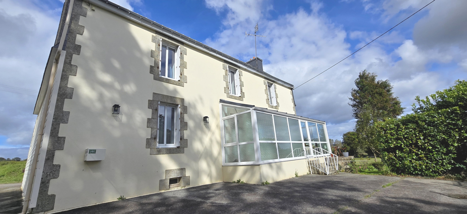 Locunolé. Sud Finistère. A 25 minutes de l'océan et 10 minutes de Quimperlé (gare TGV). Dans un environnement calme et arboré. Très belle propriété. Idéale pour activité équestre ou amoureux de la nature. Rénovée avec soin, la maison en pierre est exposée au sud et possède : au rez-de-chaussée : vaste espace à vivre (ayant salon, salle à manger et cuisine aménagée ouverte), cellier-buanderie, une grande pièce à aménager et wc ; à l'étage : dégagement, trois chambres, et salle de bains (douche, baignoire et wc). Combles et grenier. Chauffage par pompe à chaleur air-eau. Carport. Garage (stockage fourrage). Jardin. Pâture d'environ 1.2 hectare avec abri. Clôtures électriques récentes. Très bel ensemble ! (Les informations sur les risques auxquels ce bien est exposé sont disponibles sur le site Géorisques : www.georisques.gouv.fr).