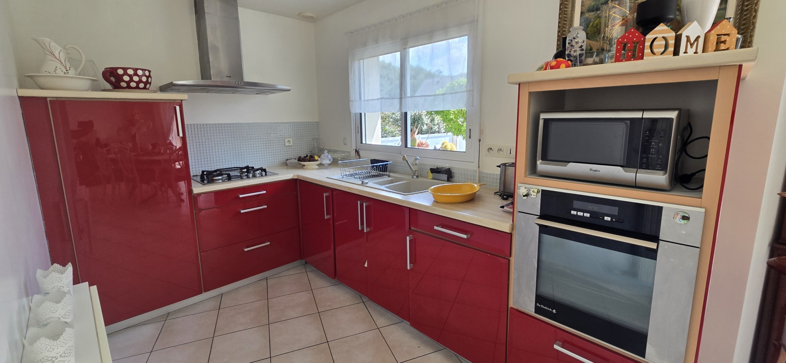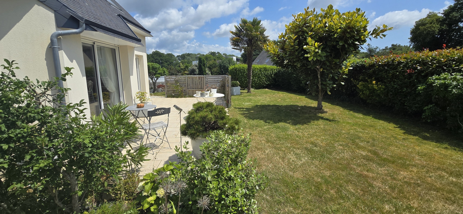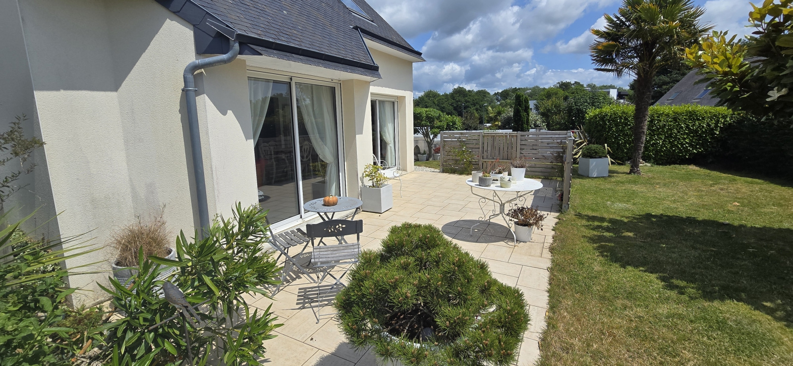 MANDAT CAP EXCLUSIF. Quimperlé. Quartier résidentiel à l'ouest de la ville. Accès voie rapide immédiat. Commerces, services médicaux, piscine, arrêt de bus, etc ... accessibles à pieds. En impasse. Cette maison contemporaine de 2008 offre de belles prestations. Lumineuse et fonctionnelle, elle offre, au rez-de-chaussée : entrée avec rangement, salon-séjour, cuisine aménagée et équipée, une chambre, salle d'eau et wc ; à l'étage : mezzanine, deux chambres, lingerie ou bureau, salle de bains et wc. Chauffage gaz de ville. Grand garage avec espace buanderie et grenier au-dessus. Terrasse carrelée et exposée sud. Jardin clos et paysager de 546 m². Abri de jardin. Cour en enrobé. Etat d'entretien irréprochable. Quartier idéalement situé ! Une visite à ne pas manquer ! Bien uniquement proposé par votre agence Cap Home Immobilier ! (Les informations sur les risques auxquels ce bien est exposé sont disponibles sur le site Géorisques : www.georisques.gouv.fr).