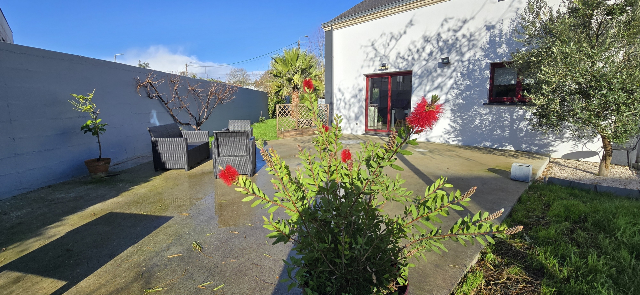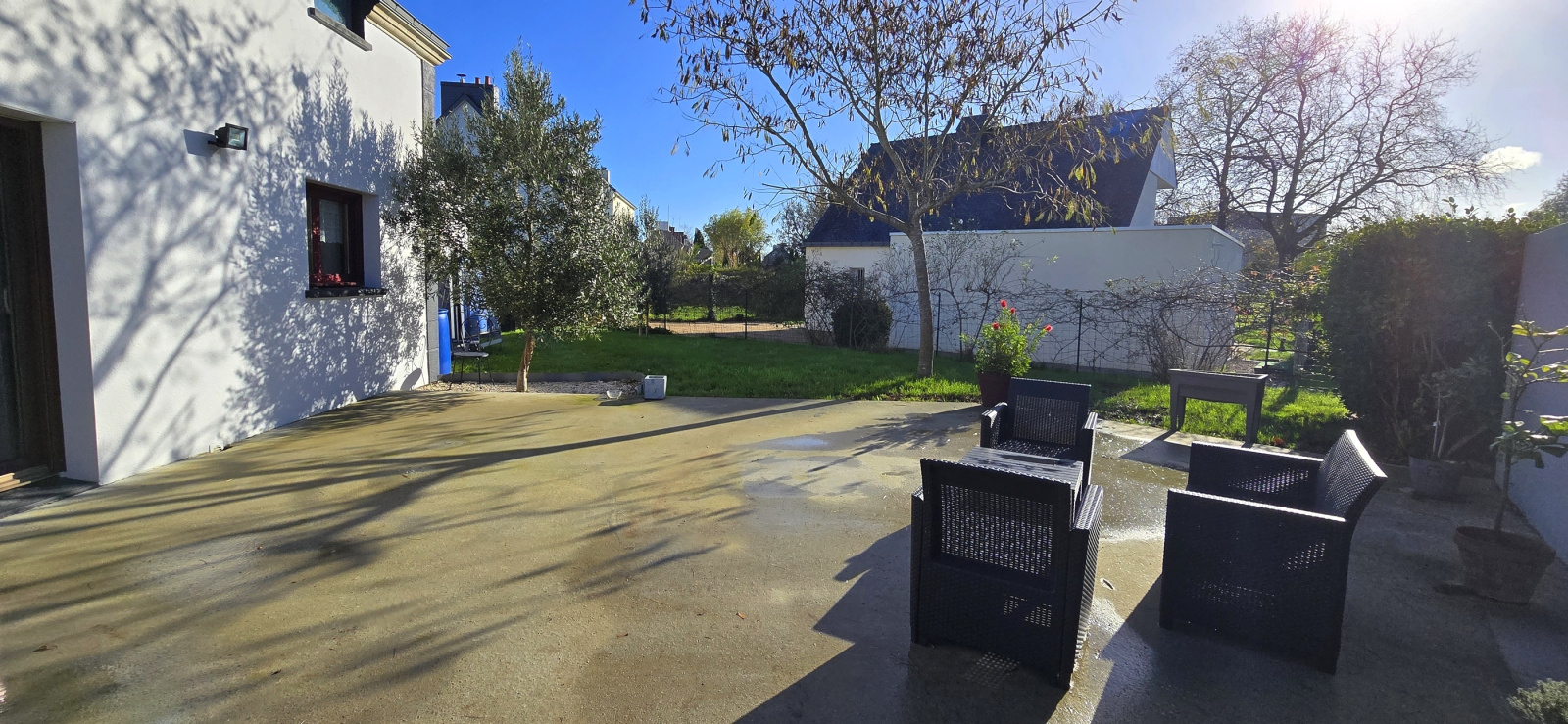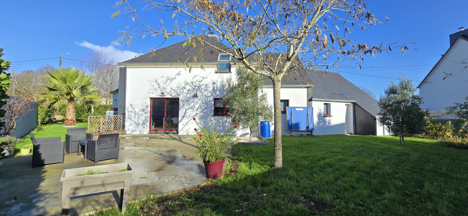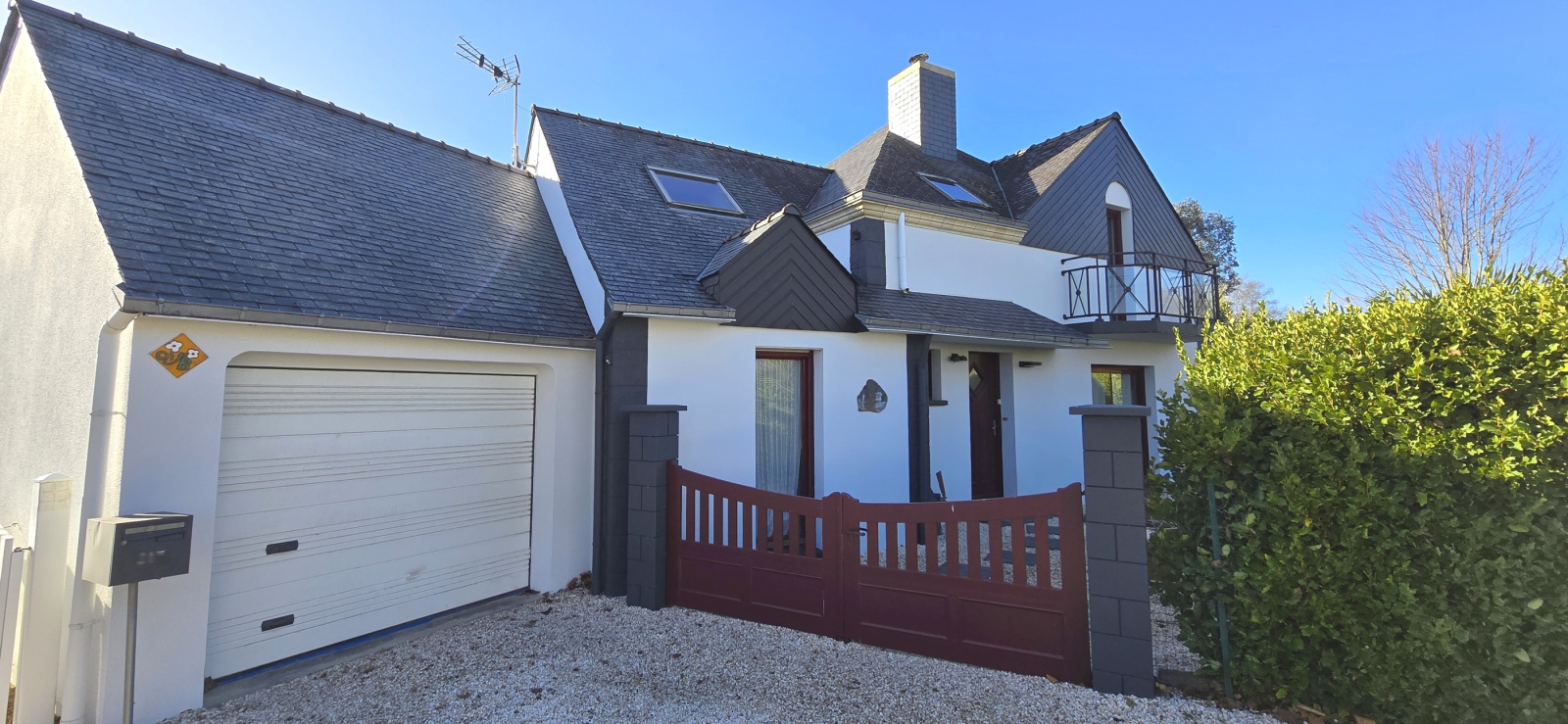 Quimperlé. A proximité du centre-ville. Ecoles et commerces accessibles à pieds. Cette maison contemporaine de 2003 profite d'une architecture originale et de beaux espaces. Lumineuse et très fonctionnelle, elle offre au rez-de-chaussée : entrée avec rangement, vaste salon-séjour avec poêle à granules, cuisine aménagée et équipée, une chambre avec salle d'eau privative, cellier et wc ; à l'étage : mezzanine, trois chambres, salle de bains et wc. Grand garage avec rangement sous toiture. Terrasse bois exposée sud. Jardin de 559 m², clos (murs et grillage) et paysager. Abri extérieur. Maison en excellent état. A découvrir à honoraires réduits avec votre agence Cap Home Immobilier ! (Les informations sur les risques auxquels ce bien est exposé sont disponibles sur le site Géorisques : georisques.gouv.fr).