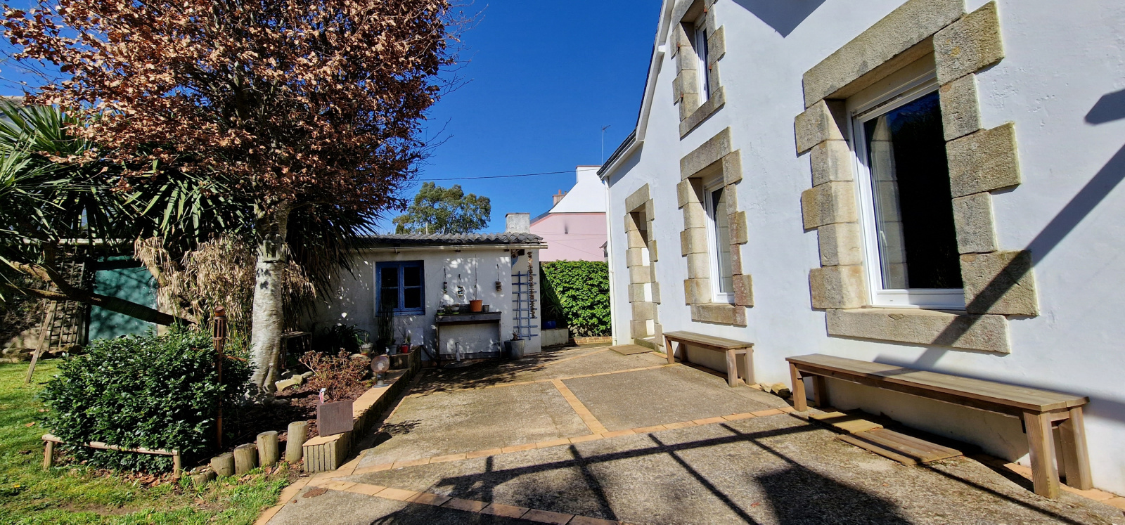 MANDAT CAP EXCLUSIF. Quimperlé. A proximité du centre-ville. Ecoles et commerces accessibles à pieds. Beaucoup de charme pour cette atypique maison des années 30. Rénovée, elle est exposée sud et dispose d'un très beau jardin paysager sans vis-à-vis. Elle offre : au rez-de-chaussée : entrée, bureau-vestiaire, lingerie-buanderie et cave ; à l'étage (en rez-de-jardin) : grande pièce de vie avec salon-séjour (poêle à bois) et cuisine aménagée, deux chambres et wc : au deuxième étage : palier, une chambre, salle d'eau et wc. Terrasse. Abris extérieurs. Jardin clos de 642 m². Coup de coeur assuré ! Bien uniquement proposé par votre agence Cap Home Immobilier ! (Les informations sur les risques auxquels ce bien est exposé sont disponibles sur le site Géorisques : www.georisques.gouv.fr).