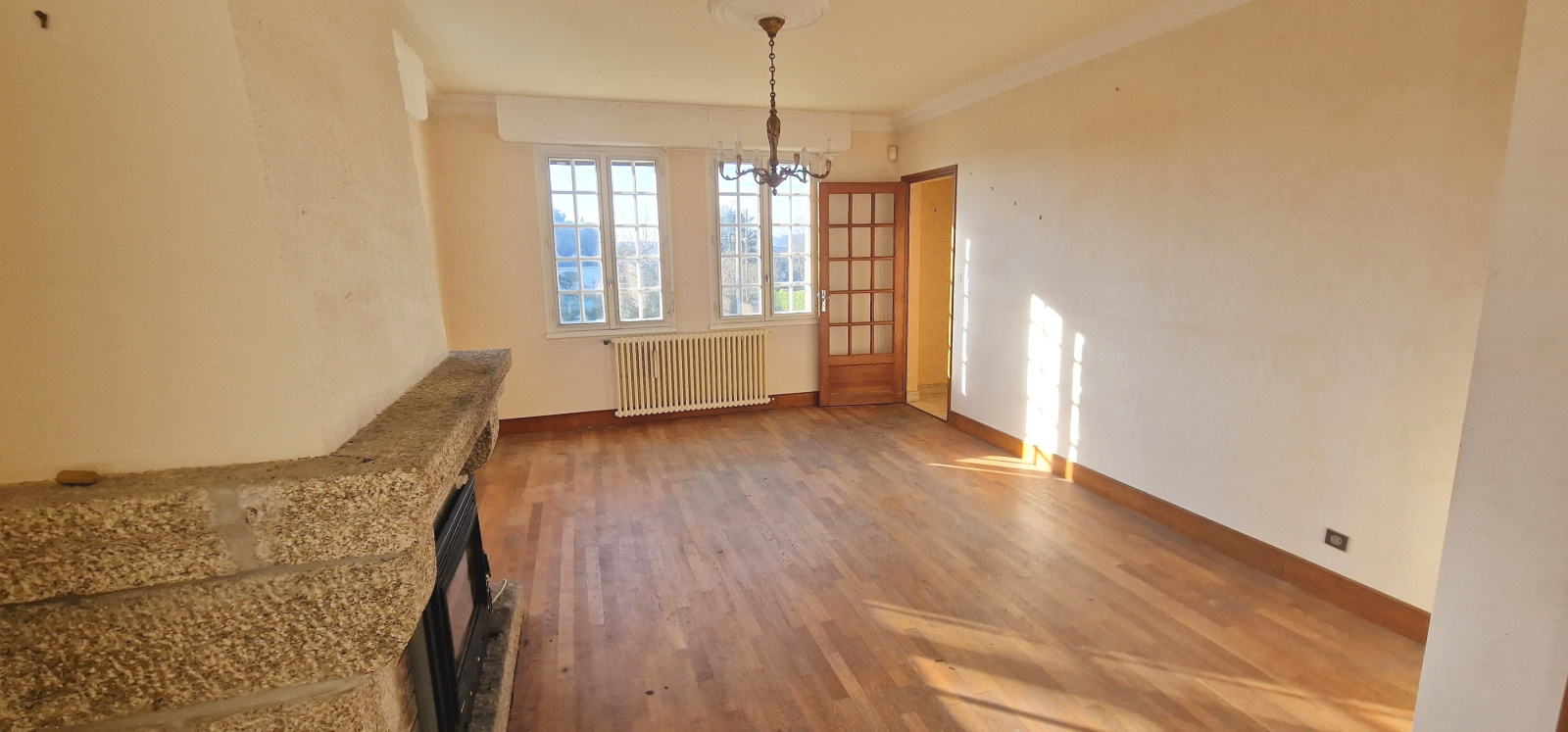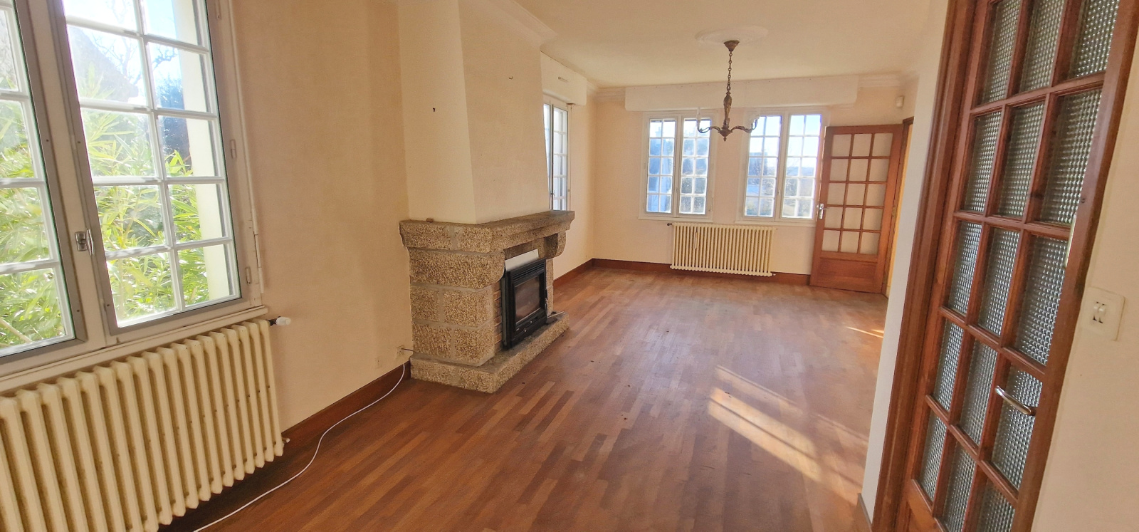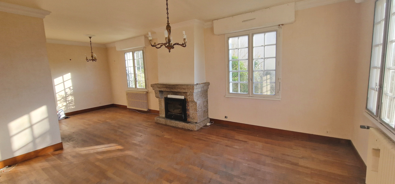 Quimperlé. A proximité du centre-ville. Sur les hauteurs. Dans un quartier résidentiel recherché. Au calme. De beaux volumes pour cette maison traditionnelle qui profite d'une vue sur la ville. Elle comprend, au rez-de-chaussée : entrée, salon-séjour avec cheminée-insert, cuisine, une chambre, salle de bains, buanderie et wc ; à l'étage : palier, quatre chambres dont deux en enfilade, salle de bains et wc. Cave. Grand garage. Très agréable jardin arboré de 1100 m². Maison saine à moderniser ! (Les informations sur les risques auxquels ce bien est exposé sont disponibles sur le site Géorisques : www.georisques.gouv.fr).