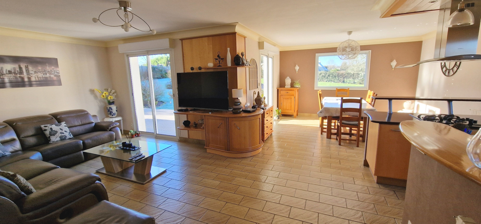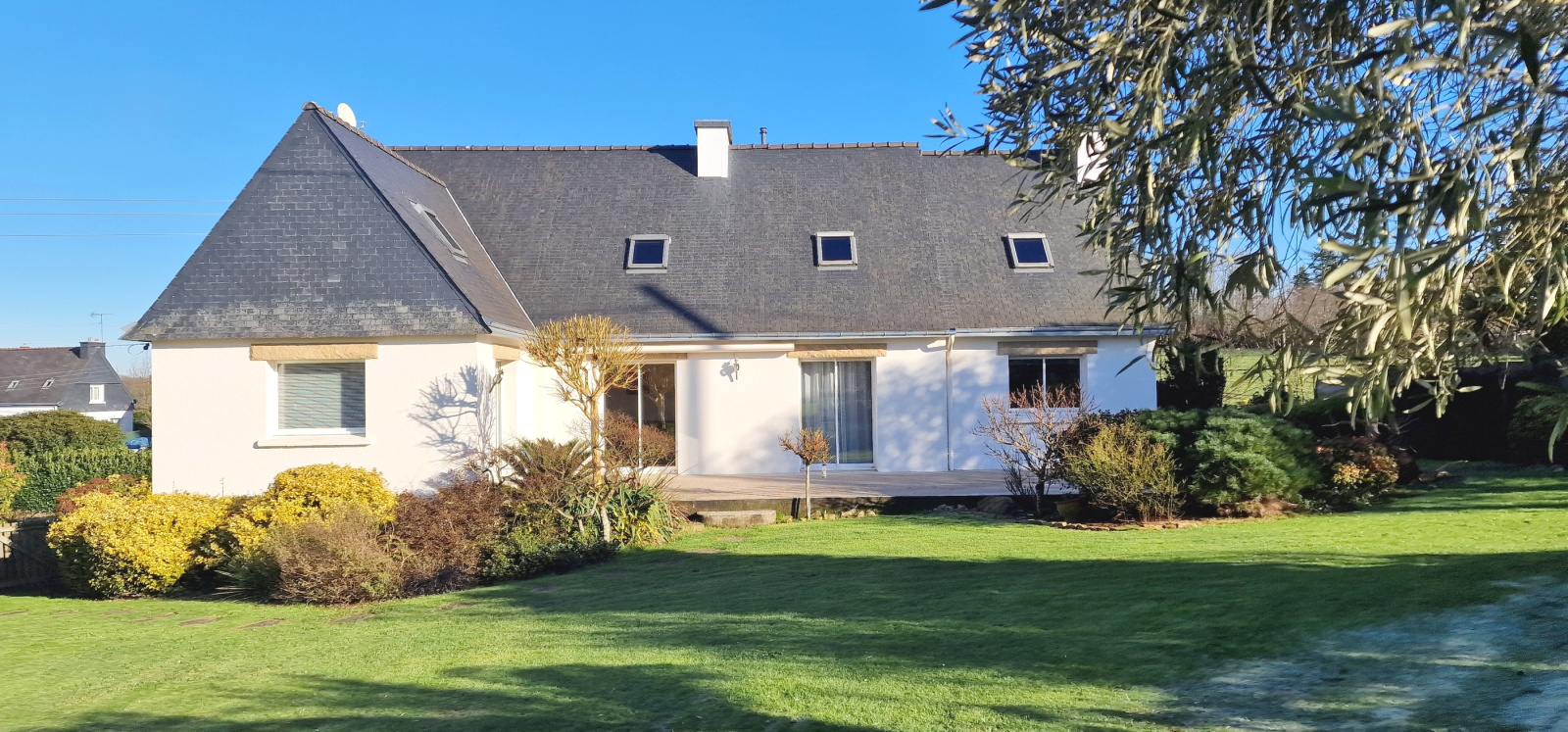MANDAT CAP EXCLUSIF. Tréméven. A cinq minutes de Quimperlé, 20 minutes des plages et 25 minutes de Lorient. A deux pas du bourg et des commodités. Cette maison de construction traditionnelle (1981) propose de beaux espaces et une vie totale de plain-pied. Elle est configurée de la manière suivante : entrée avec placard, grande pièce de vie avec salon-séjour-cuisine aménagée et équipée (accès terrasse au sud - store électrique), quatre chambres, bureau, salle d'eau et deux wc. Un escalier existant dessert l'étage qui est totalement aménageable (sur dalle béton). Sous-sol (grande hauteur) avec garages (3 véhicules - portes motorisées), buanderie, cave et une pièce. Très beau jardin paysager et entretenu de 1998 m². Aucun vis-à-vis. Assainissement individuel conforme. Maison très saine et en excellent état ! Multiples possibilités d'agencement ! Bien uniquement proposé par votre agence Cap Home Immobilier ! (Les informations sur les risques auxquels ce bien est exposé sont disponibles sur le site Géorisques : www.georisques.gouv.fr).