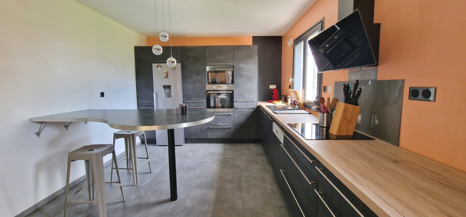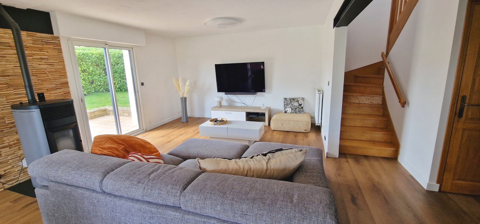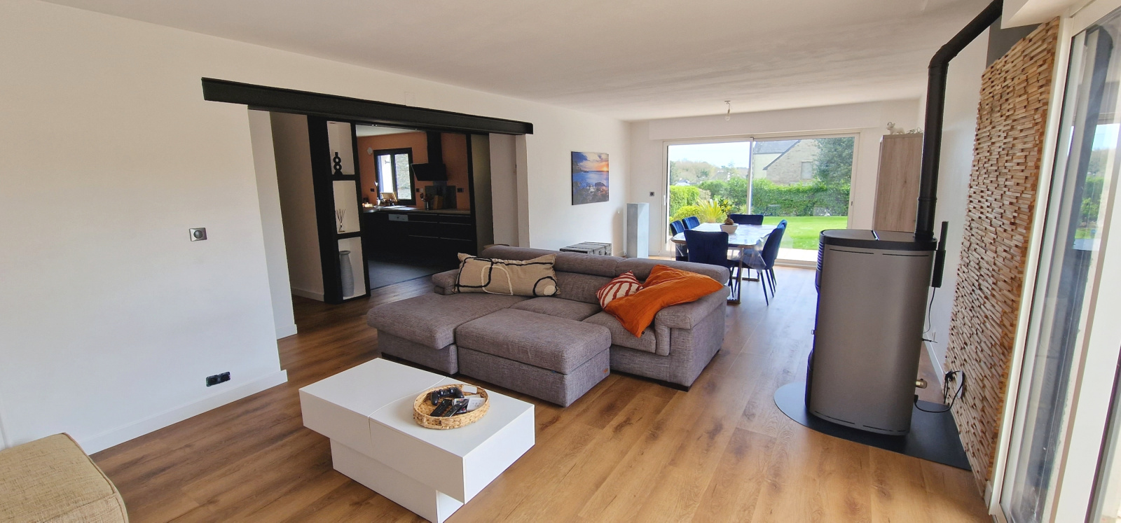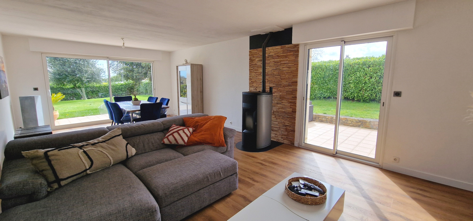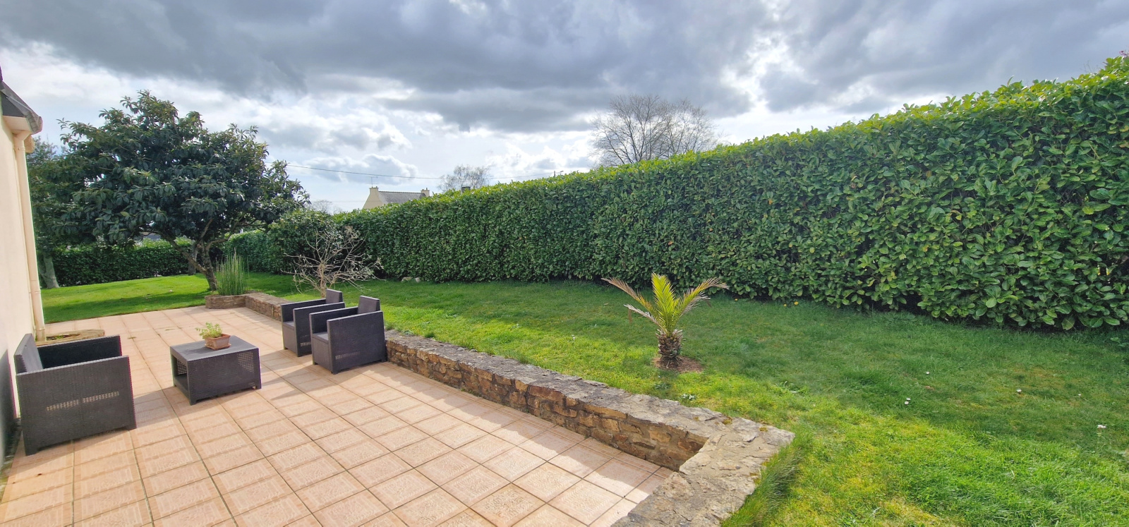 Cléguer. A 15 km de Lorient et 3 km du bourg (commerces et écoles). Axe Lorient-Roscoff et arrêt de bus à proximité immédiate. Dans un quartier résidentiel calme. Aucun vis-à-vis pour cette maison traditionnelle de 1995 et modernisée en 2022. Fonctionnelle et spacieuse, elle offre, au rez-de-chaussée : entrée avec placard, salon-séjour avec poêle à granules, cuisine aménagée et équipée, une chambre, salle d'eau et wc ; à l'étage : palier, quatre chambres, salle de bains et wc. Grenier (rangement). Garage. Chauffage par pompe à chaleur (installation en 2022). Terrasse carrelée et exposée sud. Très beau jardin arboré (nombreux fruitiers) et cloturé, de 1788 m². Abris de jardin. Assainissement collectif. Excellent état ! Maison familiale très accueillante !