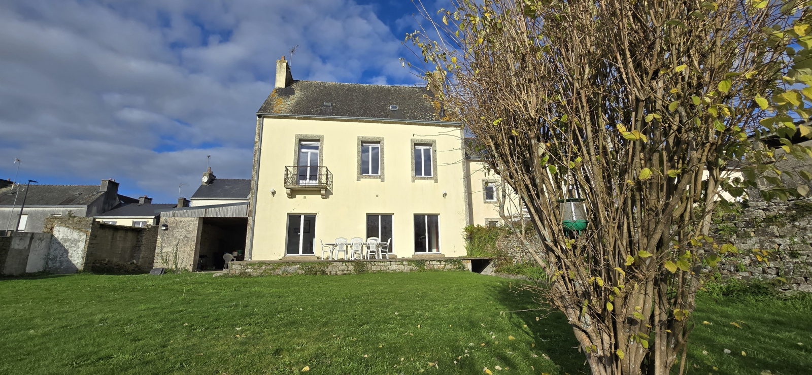 MANDAT CAP EXCLUSIF. Bannalec. Proche de toutes les commodités. Les écoles, les commerces et la gare accessibles à pieds. Beaucoup de charme pour cette belle maison de ville. Datant des années 1910, elle propose grands espaces et luminosité. Elle comprend, au rez-de-chaussée : entrée, salon-séjour avec poêle à granules, cuisine aménagée, une chambre, salle d'eau et wc ; au premier étage : palier, quatre chambres, salle de bains et wc. Au dessus, un grenier aménageable (escalier existant). Cave. L'appentis (rangement et espace repas pour l'été) peut également devenir une extension à l'habitation, Terrasse exposée sud. Jardin clos (murs en pierre) de 625 m². Découvrez cette maison familiale à mi-chemin entre Lorient et Quimper ! Bien uniquement proposé par votre agence Cap Home Immobilier ! (Les informations sur les risques auxquels ce bien est exposé sont disponibles sur le site Géorisques : www.georisques.gouv.fr).