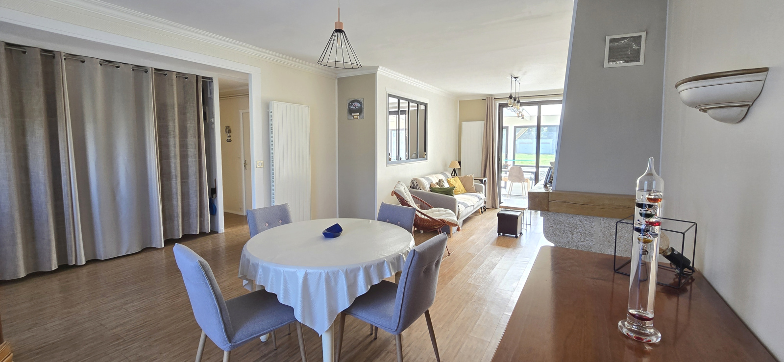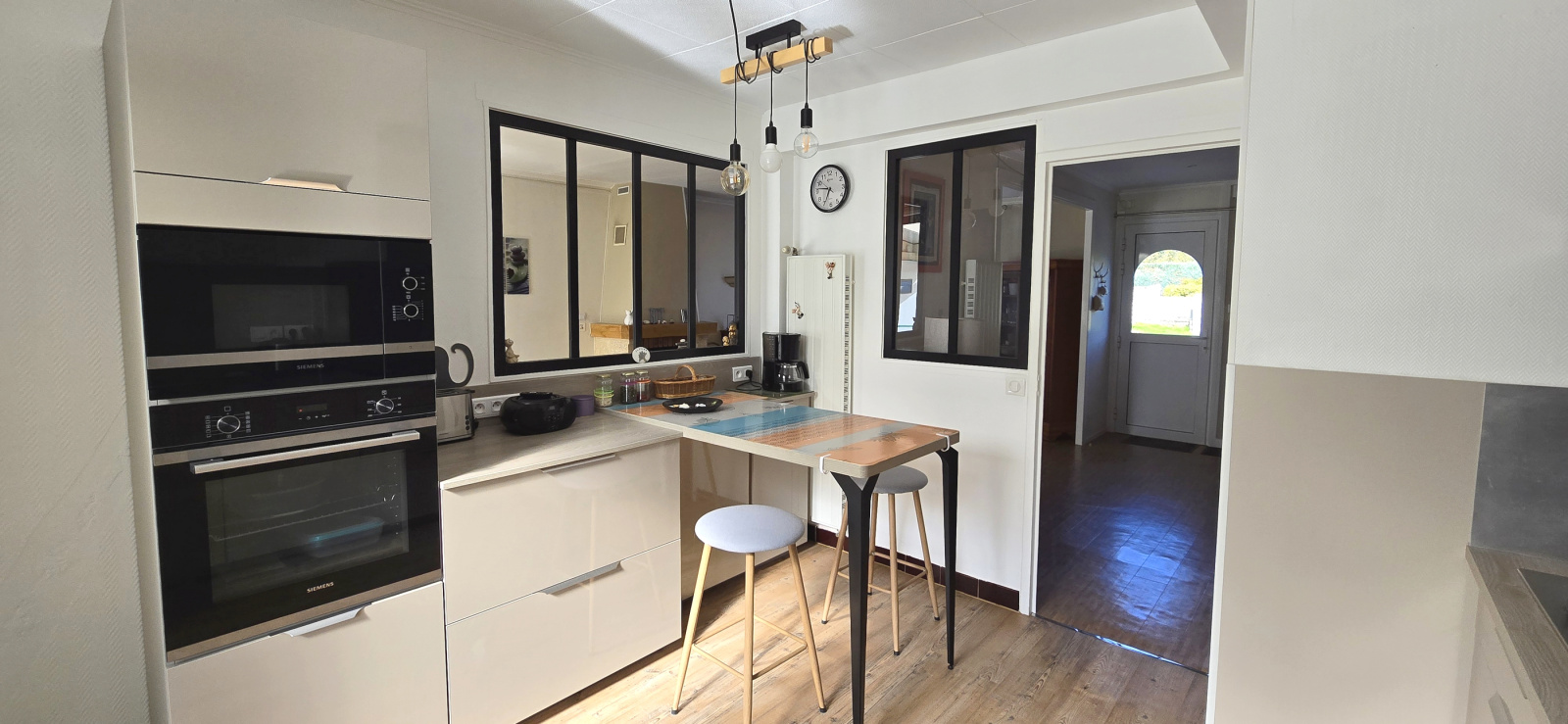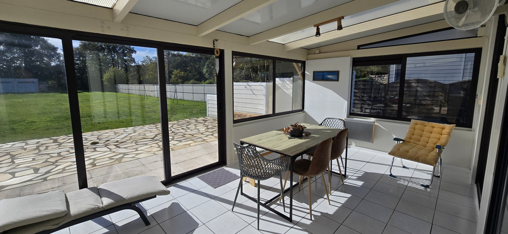 Baye. A 5 minutes de Quimperlé et de l'accès voie rapide. Les plages et les ports à 15 minutes. A proximité du bourg et de ses commodités (commerces, école, médecin, ...). Dans un quartier calme et orienté vers la campagne. Très fonctionnelle et lumineuse, cette maison de plain-pied propose de nombreux atouts. Elle comprend : entrée avec placards, salon-séjour avec cheminée-insert, cuisine aménagée et équipée, véranda, trois chambres, salle d'eau et wc. Terrasse exposée sud avec vue dégagée. Garage et atelier en annexe. Jardin clos de 2247 m². A découvrir à honoraires réduits avec votre agence Cap Home Immobilier ! (Les informations sur les risques auxquels ce bien est exposé sont disponibles sur le site Géorisques : georisques.gouv.fr).